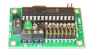 The Buffington Effects Hobby Servo and Digital Controller allows you to control eight servos from a computer's serial port. What sets this servo controller apart from other servo controllers is that it has been designed with animatronics in mind. When multiple servo controllers are used together, you can control up to 378 servos at 30 updates per second. As a side benefit, if you do not need fast updates, you can control up to 65535 servos from a single serial line using multiple servo controllers. Another feature that should appeal to anyone doing animatronics is that you can individually set the range of rotation for each servo from a full 180 degrees to about 5 degrees. One final feature that sets this controller apart is that it can be configured to have eight on/off outputs instead of eight servo outputs. This allows you to control things such as lights, motors, fans, buttons, or pretty much anything that can function in an on/off manner. This controller accepts both the Buffington Effects data format as well as the Mini SSC data format. Buffington Effects Hobby Servo and Digital Controller Documentation (229K) Configuration utility for Servo and Digital Controller (17K) |