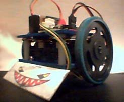 This is a joint project between Buffington Effects and the Robotics Society of America. This kit is designed to expose kids to robots by giving them all of the parts necessary to build a working robot. It comes with a pre-programmed chip so once it is together, it will start going. This is a sumo robot. Sumo robots are somewhat popular in Japan. The idea is the same as normal sumo - push your opponent off of the mat. This robot will drive on any surface that is a solid color. When it encounters a thick line that contrasts with the main surface it will turn around and go in another direction.